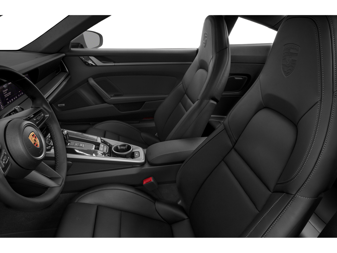 The 20/21-inch RS Spyder Design wheels complete the classic 911 stance, while the glass slide/tilt sunroof adds open-air light without sacrificing the coupe profile. Additional upscale touches include 14-way power seats with memory, heated GT Sport steering wheel, Porsche crests embossed on the headrests, and clear taillights that modernize the rear design beautifully.