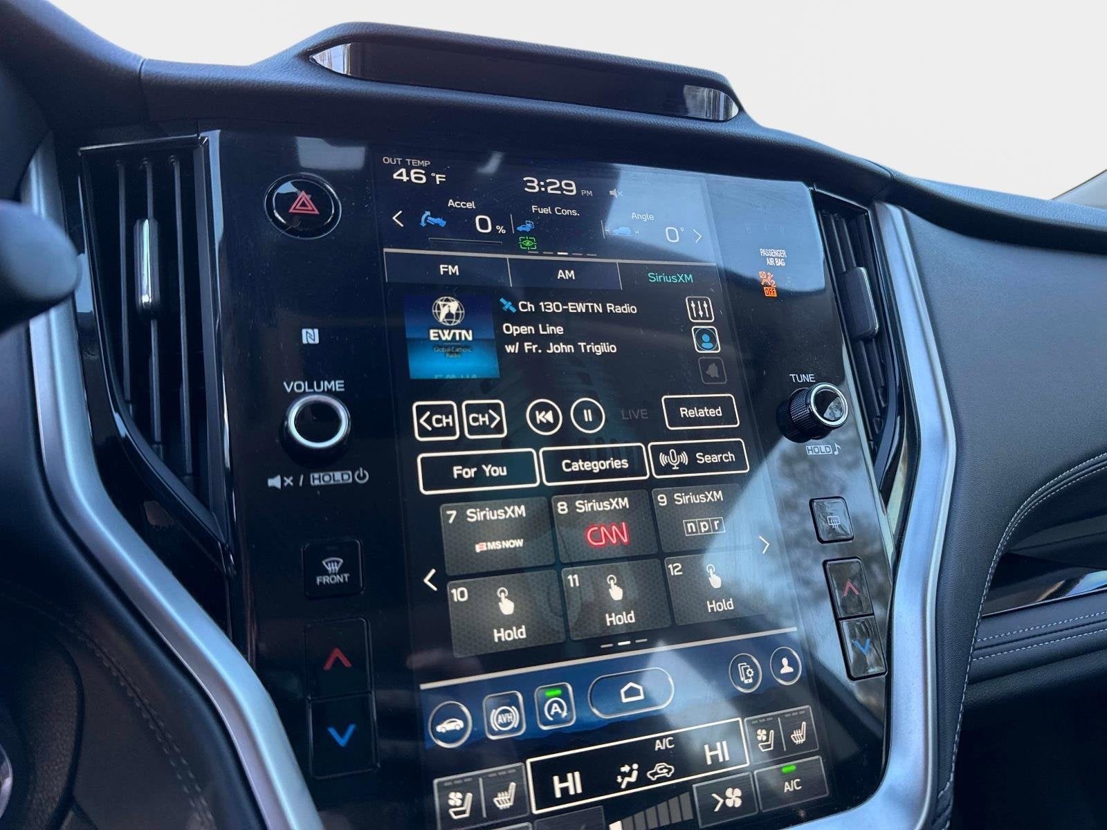 The Touring RDG trim is exceptionally well equipped, featuring Subaru EyeSight Driver-Assist with Automatic Emergency Steering, DriverFocus Distraction Mitigation, Blind Spot Detection with Rear Cross-Traffic Alert, Reverse Automatic Braking, and a Front View Monitor with 180-degree visibility. Inside, the cabin offers premium leather-trimmed seating, a heated steering wheel, heated front and rear outboard seats, dual-zone automatic climate control, and a panoramic power moonroof.