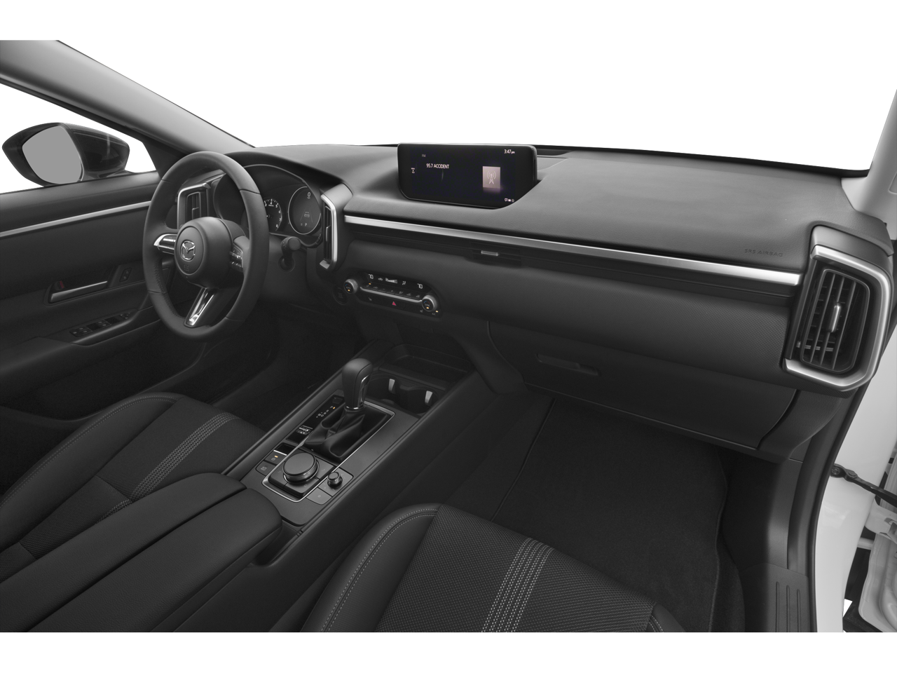 12 Speakers, 4-Wheel Disc Brakes, ABS brakes, Air Conditioning, Alloy wheels, AM/FM radio: SiriusXM, AppLink/Apple CarPlay and Android Auto, Auto High-beam Headlights, Automatic temperature control, Brake assist, Bumpers: body-color, Carpet Cargo Mat, Delay-off headlights, Driver door bin, Driver vanity mirror, Dual front impact airbags, Dual front side impact airbags, Electronic Stability Control, Emergency communication system: MAZDA CONNECT, Exterior Parking Camera Rear, Front anti-roll bar, Front Bucket Seats, Front Center Armrest, Front dual zone A/C, Front reading lights, Front wheel independent suspension, Fully automatic headlights, Half Leatherette Seat Trim, Heated door mirrors, Heated front seats, Heated Front Seats w/3 Level Adjustment, Illuminated entry, Knee airbag, Leather Shift Knob, Leather steering wheel, Low tire pressure warning, Occupant sensing airbag, Outside temperature display, Overhead airbag, Overhead console, Panic alarm, Passenger door bin, Passenger vanity mirror, Power door mirrors, Power driver seat, Power Liftgate, Power moonroof, Power steering, Power windows, Premium Carpet Floor Mats, Radio data system, Radio: AM/FM/HD Bose 12-Speaker Audio Sound System, Rain sensing wipers, Rear seat center armrest, Rear window defroster, Rear window wiper, Remote keyless entry, Speed control, Speed-sensing steering, Split folding rear seat, Spoiler, Steering wheel mounted audio controls, Tachometer, Telescoping steering wheel, Tilt steering wheel, Traction control, Trip computer, Turn signal indicator mirrors, Variably intermittent wipers, Wheels: 17" x 7J Aluminum Alloy Black Metallic Finish.